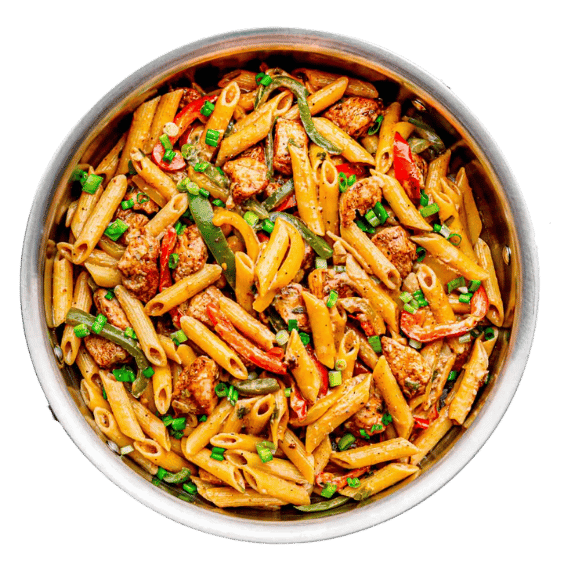 Creamy, spicy, and absolutely irresistible. Tender shredded jerk chicken tossed through velvety pasta, infused with jerk seasoning and Caribbean spices, then finished with a colourful medley of bell peppers. A perfect fusion of comfort food and island flair.