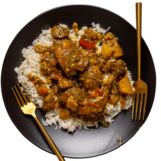 Crispy wings simmered in jerk or naga curry – your choice of heat – served with rice & peas and a drink. A fiery twist on wings, island style.